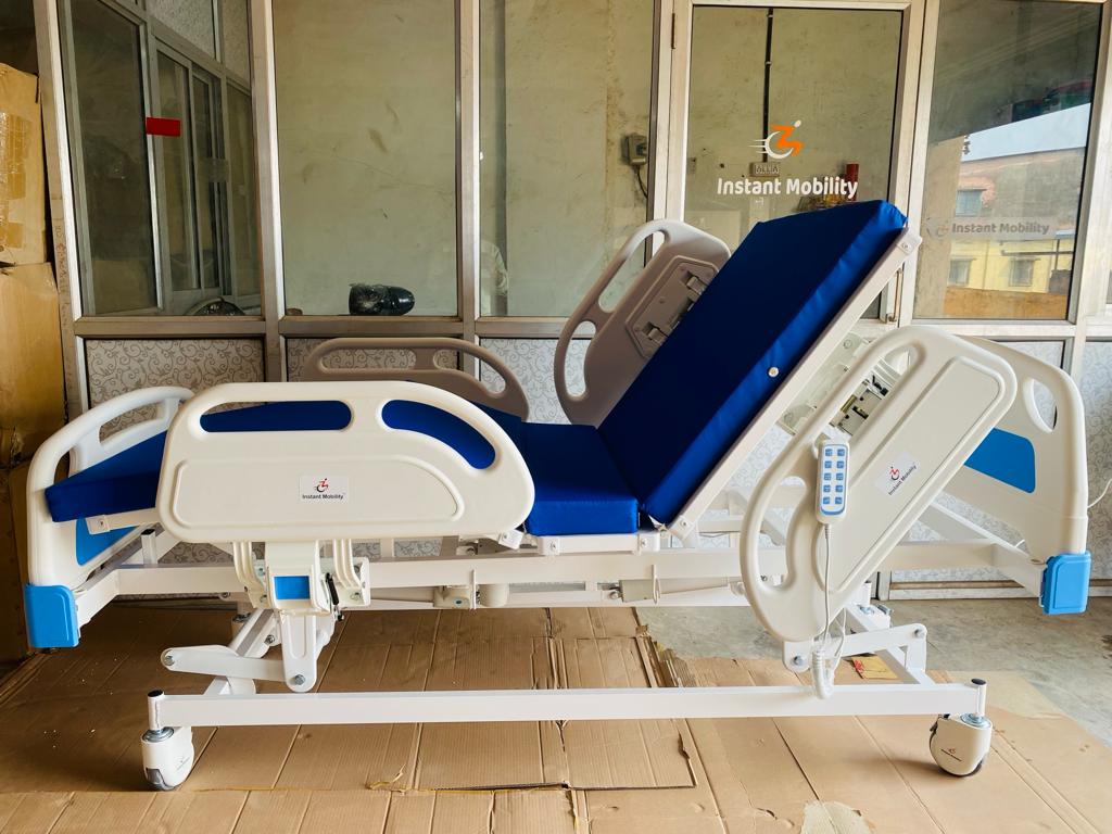 The 5 Function Motorized Bed from Western Healthcare is designed for ultimate patient comfort, safety, and convenience. With motorized adjustments for backrest, leg rest, height, knee tilt, and Trendelenburg/Reverse Trendelenburg, this bed ensures precise positioning for medical care, rehabilitation, and home recovery. Ideal for hospitals, nursing homes, clinics, and home healthcare setups. Built with a heavy-duty steel frame and sturdy safety rails, it is durable, reliable, and easy to operate. Available for rent and sale, making it a flexible solution for short-term or long-term patient care